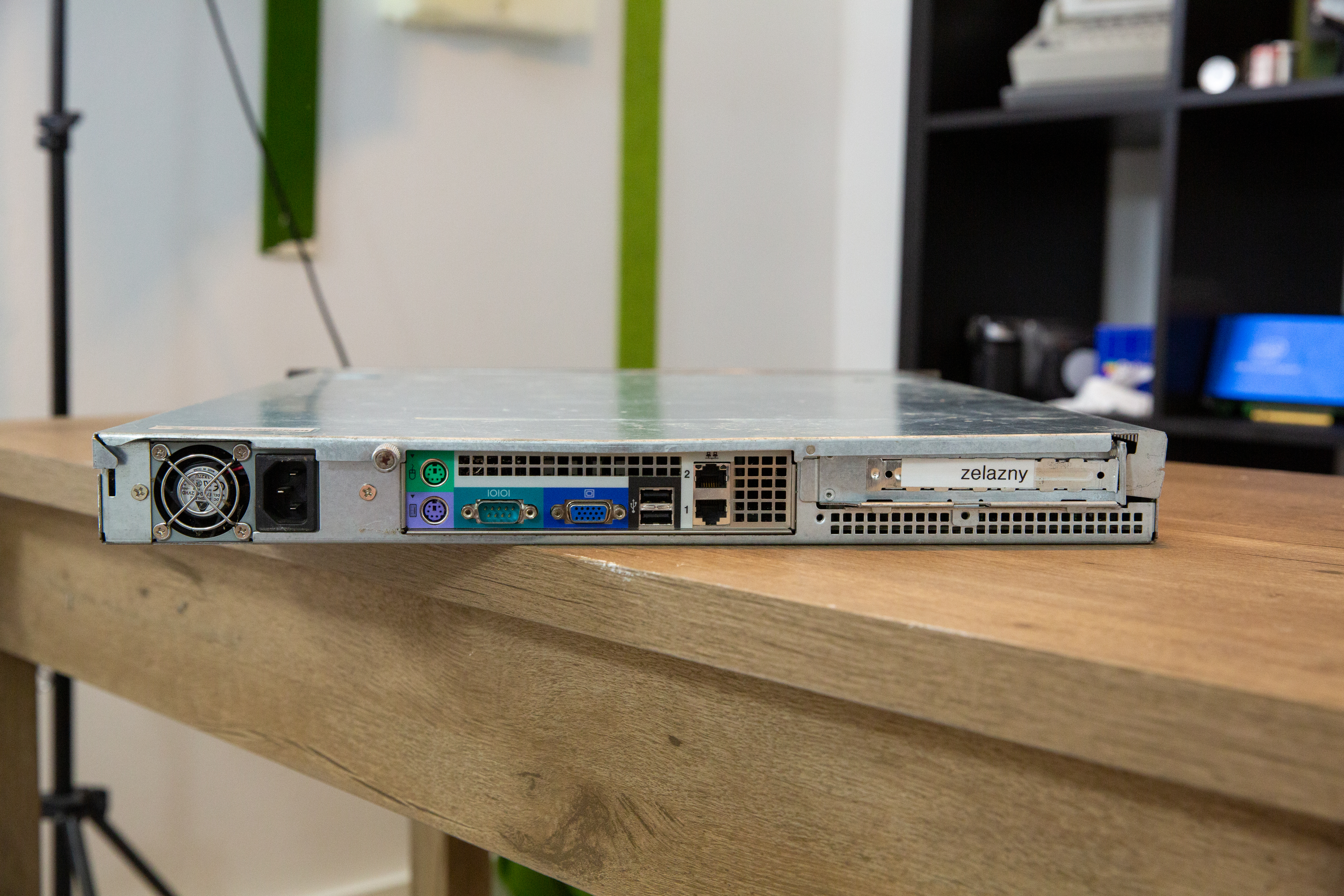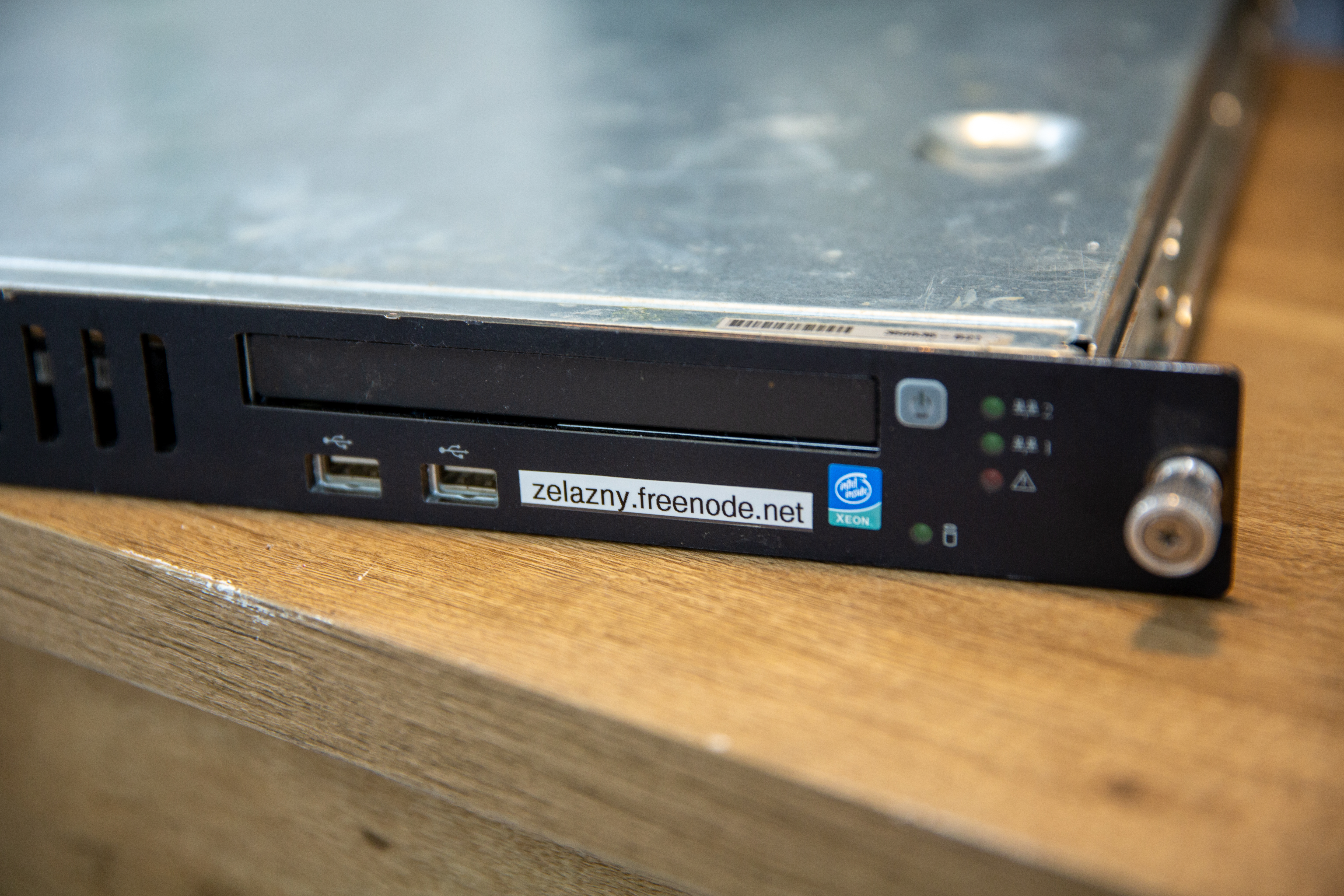 The front panel of zelazny, showing off its freenode hostname sticker